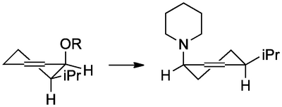 We need to return to the allylic substitution. There will be times when the regular SN2 displacement does not happen, for example when SN1 might be favoured (if the reaction is in a polar solvent which is good at stabilising the cation). But imagine we're in a non-polar solvent and we have a starting material where the regular displacement site (where the leaving group is attached) is sterically congested. It turns out you can easily get displacement through attack of the nucleophile at the end of the double bond. This is the SN2' (say "SN2 prime") mechanism that you need to know and deploy at appropriate moments.