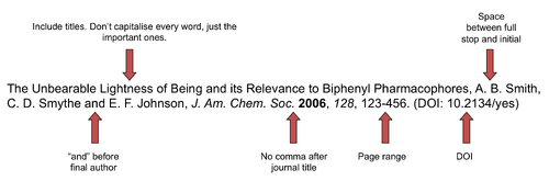 When you leave the group, all your lab books and spectra remain in the department and all reports/write-ups need to be handed in digitally. Formatting of referencesReference markers go after punctuation, and references are listed as endnotes, not footnotes. You will learn how to use references if you read research papers. Use the following style, exactly as shown: