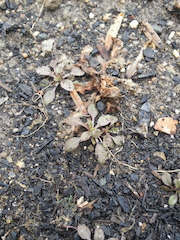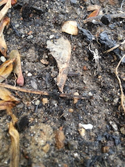 3. A sample of the transect was then taken using a trowel. A sample that contained some biological life (weeds) was selected.