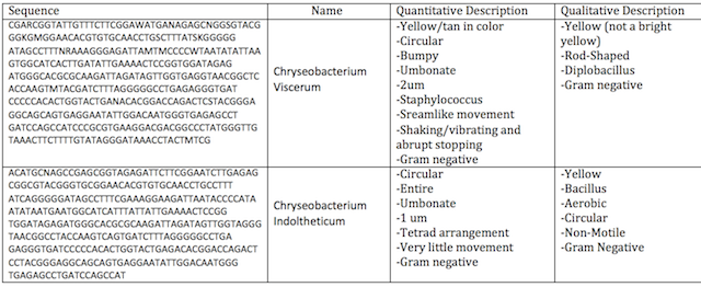 There were many similarities in the comparison of what was viewed in lab two and three, and what was found after DNA analysis and research. The first specimen, which correlated with our sample from agar plate 10^-3 was described to be an identical shade of yellow, also rod-shaped, and gram negative. The second sample which corresponded with our 10^-9 agar plate was also described to be bacillus, non-motile, and gram negative. Although there are a few notable differences there is also room for potential error because the physical description of the colony is reliant on the perception of the viewer. It was notable that there was a presence of many bacterium from the Chryseobacterium lineage in our transect.
