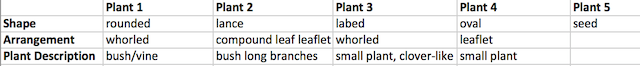 5. Describe the plants that were extracted and where they were found in your notebook and record this data in table 1.