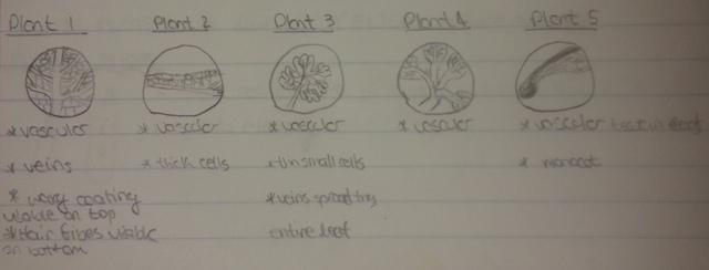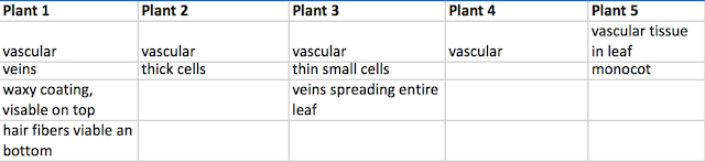 2. Observe the extracted plant samples and describe the vascularization of each plant. Record information on Table 1.