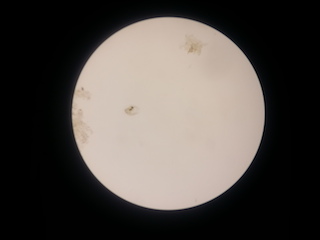 Specimen 3- Mobile individual, clear in color. Appeared to have some sort of inner membrane. Occupied 12 ocular spaces at 40x ( 30um)