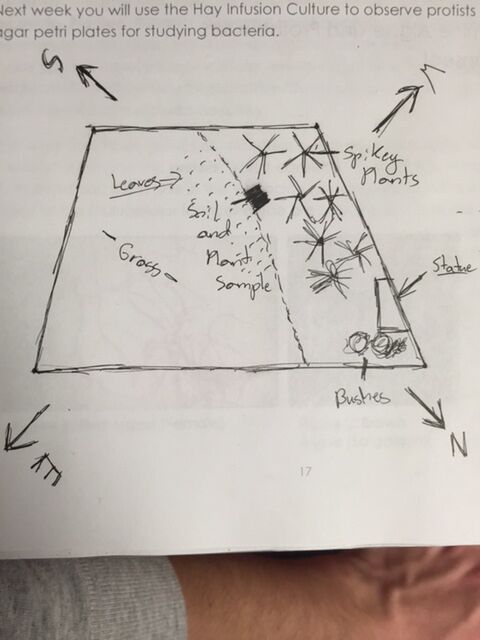 3. Take a representative sample from 5 different plants in a way that is minimally damaging. Make sure to represent as many different plants as possible. Build a map of the transect and record where each sample was taken from. Place the samples in a zoploc bag.