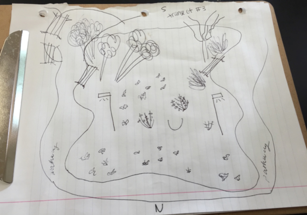 15 January 2016 Observing Evolution Lab #1 Transect #3 is near bender arena. The ground was covered with many short dried plants mostly. There were about 8 trees that still have green leaves. Also, there were medium sized bushes that were completely dried. It had no water in it but had many dried leaves and wet soil. We collected in a plastic bag soil and leaves for the hay infusion. It had biotic factors such as leaves and trees but also had abiotic factors such as rocks.