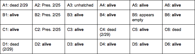 a3 [control] - removed and preserved, assumed dead bc still not hatched.