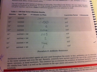 Procedure I: Quantifying and Observing Microorganisms When I was recording the plates I had seen a substantial difference in the colony types between the plates with tetracycline and without tetracycline.