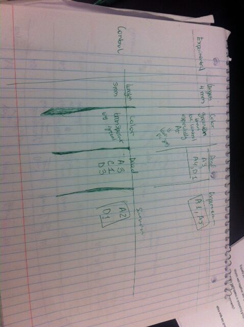 During this day we were finally able to observe that the experimental and the control had different length of bodies. With most of the experimental being in the range of 4mm, and control being 5mm-5.5mm. The colors of fish of experimental and control stayed the same. There were no death recorded