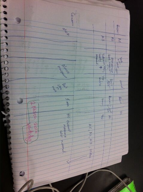26 February 2016 There were two dishes used control and experimental. Control dish contained 24 valves, from which 20 valves were used and 2mL of DeerPark water was added to each valve. Twenty zebrafish embryos were selected and under the microscope checked for their life. Afterwards, zebrafish embryos were placed into 20 valves, so that 1 valve contained 1 embryo. The experimental dish contained 24 valves, from which 20 valves were used and 2mL of 10mg/L of Fluoride was poured into a valve. Then the zebrafish embryo were placed into each valve. However, before that wenty zebrafish embryos were checked for life. When this steps were finished, under the microscope the stages of the life f the zebrafish were recorded and the dishes were labeled as "control", "experimental", name and date. The fishes record both in experimental and control were in 8, 13, 15 somites. Experimental 8 somite- A3, A5, B4, C3, D5 13 somite- A1, C1, C5, D2 15 somite- the rest