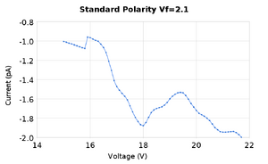 The purpose of this lab was to find the excitation energy levels of neon gas. We followed the procedure found here | Dr. Gold's Lab Manual for experiment 6. We took measurements of the current while varying the accelerating voltage in order to find peaks and valleys in the graph of current vs voltage. We performed these measurements a few times for two different levels of the filament voltage, and with two different separations between measurements of the anode voltage of 1V and 0.1V.