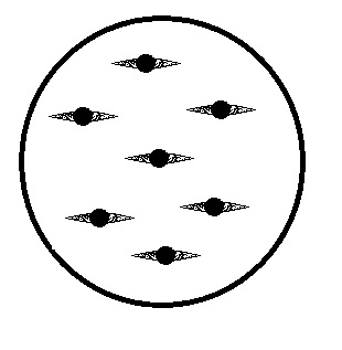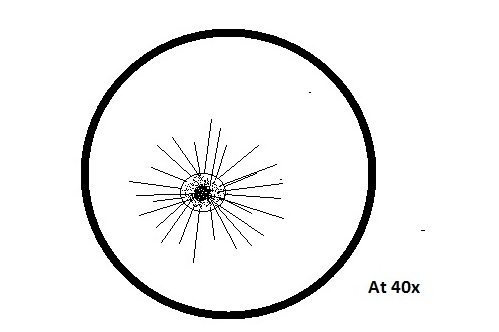 Colorless, no apparent motion, spherical shaped, radiating spine