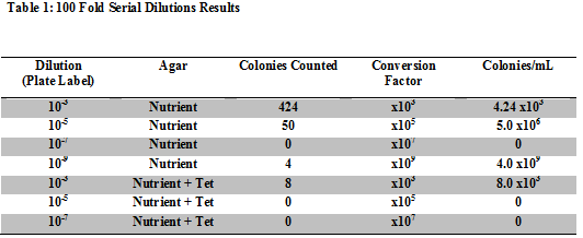 2. Analyze the serial dilution petri-dishes to determine the growth in both the nutrient and the nutrient + tet agars, at various different concentrations.
