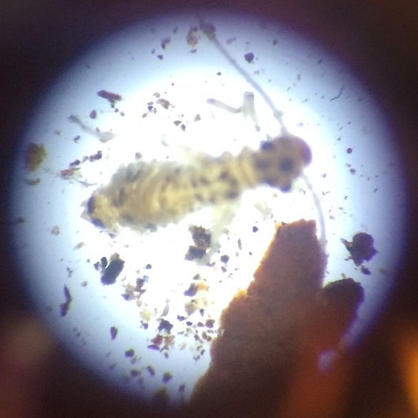 | Arthropoda Collembola | 3mm | 1 | Springtail X - flat, long segmented body, long curved antennae extending laterally from head | |