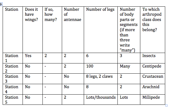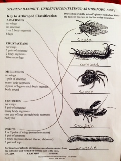 5. Then, we looked at the samples of different arthropods, and filled out the worksheet on them.