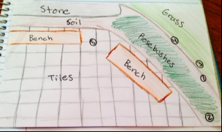 Abiotic/Biotic Factors: concrete, stone, soil, grass, rose bushes, small plants