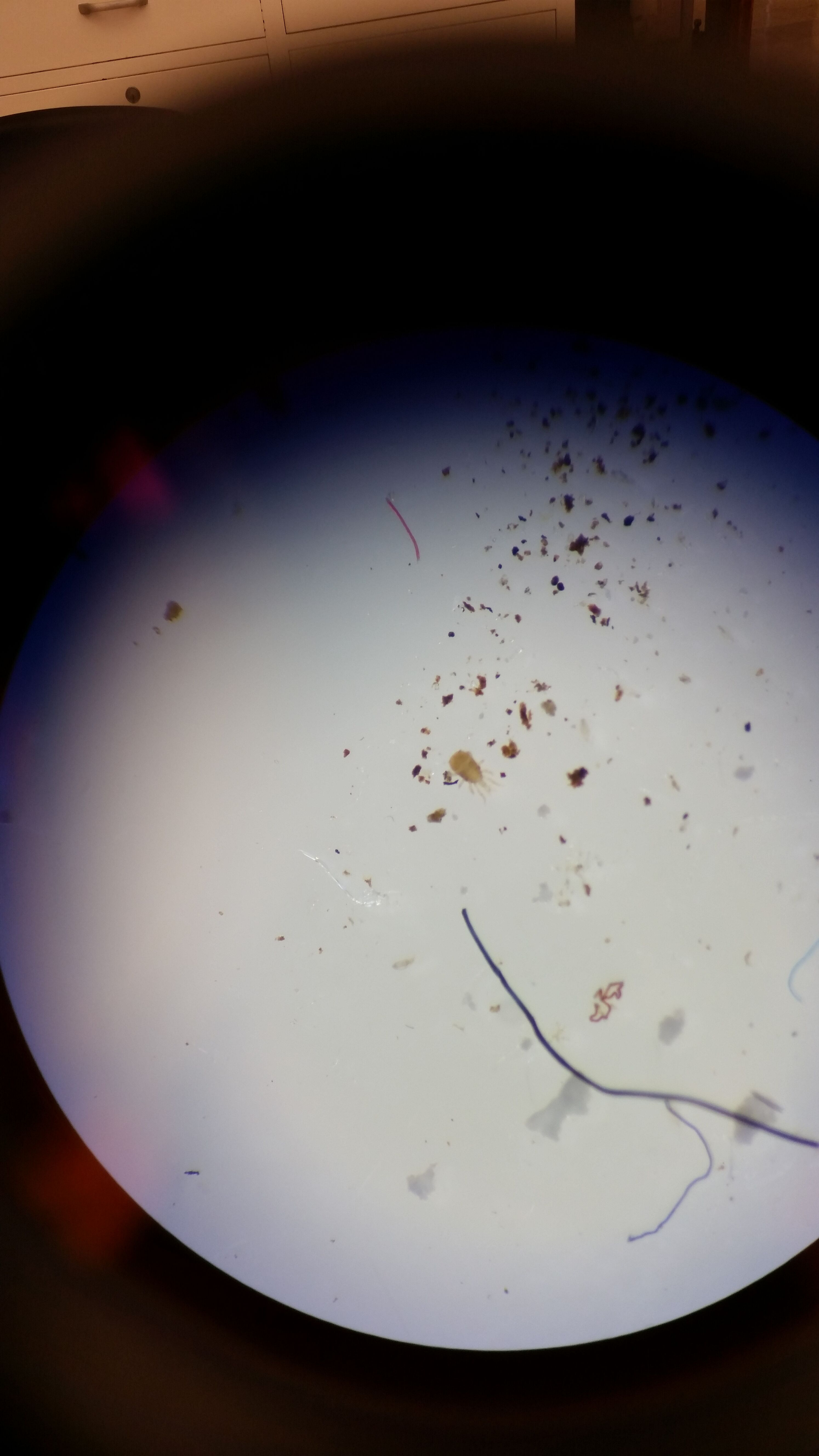 The second species found fell under the class Insecta and the phylum Arthropoda. Much smaller than the first invertebrate observed, this specimen measure ~0.25 mm. There were two in this particular sample, and had an overall oval shape with a very large thorax compared to its head. The legs were laterally compressed towards the front of its body, and the animal was identified as a flea with the use of the dichotomous key.