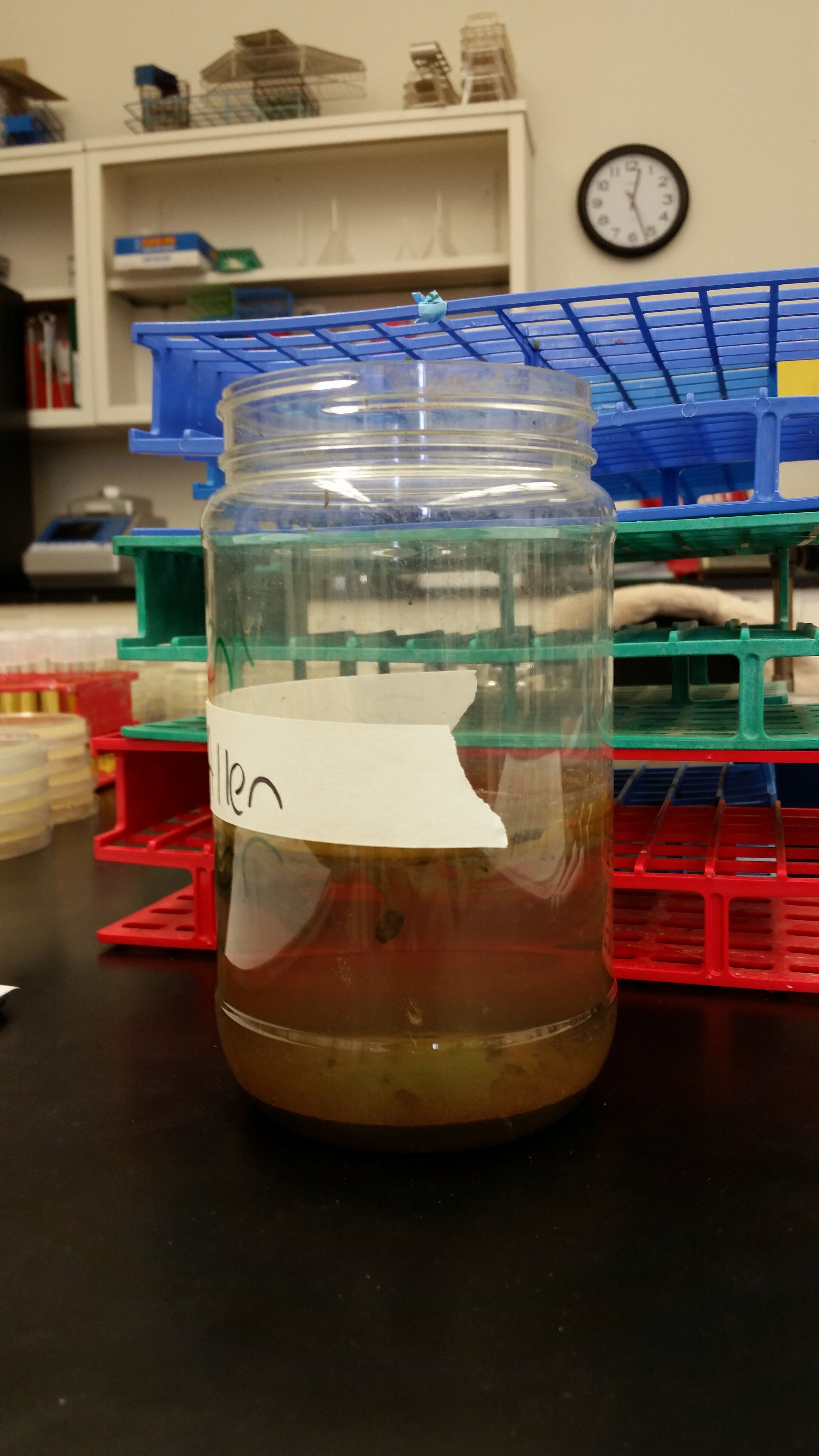 The final Hay Infusion observation revealed that the rancid smell had all but disappeared, and the viscous layer was mostly gone. The middle portion had become slightly see through, with various detritus spread on the bottom of the jar.