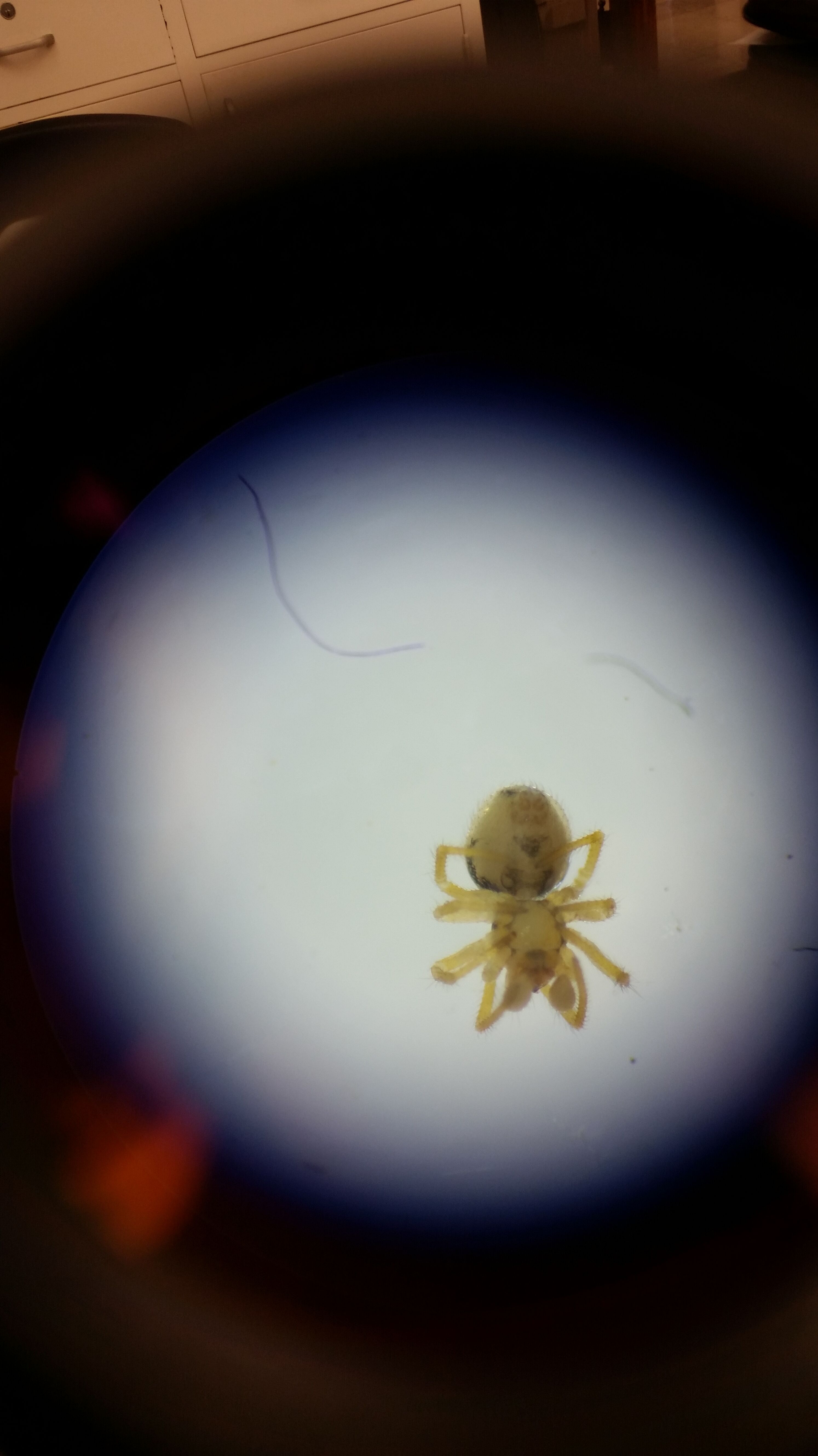 Invertebrate #1: The first invertebrate found in one of the samples from the Burlese funnel was an Arachnid from the Arthropoda. It measured roughly 2 mm in length with a pronounced thorax, small abdomen, and other characteristics that are common for a spider. Only one was found in all of the samples taken from the Burlese funnel, and this invertebrate was the largest of all of the specimens found.