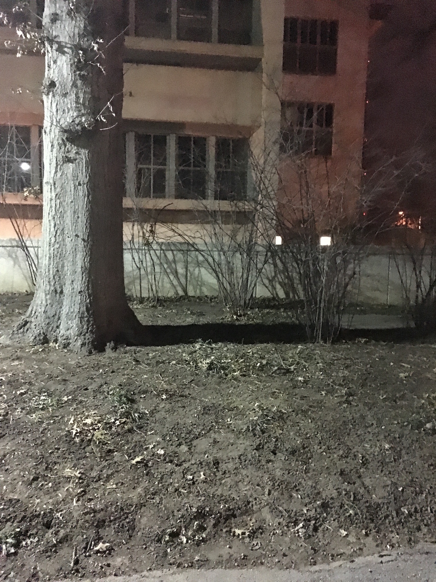 Transect 1 is comprised mostly of factors that make up a wooded terrain -- trees, leaves, soil, plants and is located right outside the East side of Hurst. The majority of the transect is on a small hill and is dominated by one large tree as well as other smaller trees (see fig. 3 and 4 for location, respectively). As a result of the recent weather (cold and snowy) much of the plant life is no longer living. According to a sign placed on the transect, there is Kerria japonica 'Pleniflora' present, a plant typically found in China, Japan, and Korea (see fig. 2). On the day when the samples were taken from the transect (01/13), the high was 32°F and the low was 21°F and there was no precipitation. Although the transect was visited at night and sunlight was not present -- the only light present came from the light pole -- it is reasonable to assume that sunlight plays a significant role in the plant and animal life seen on the transect.