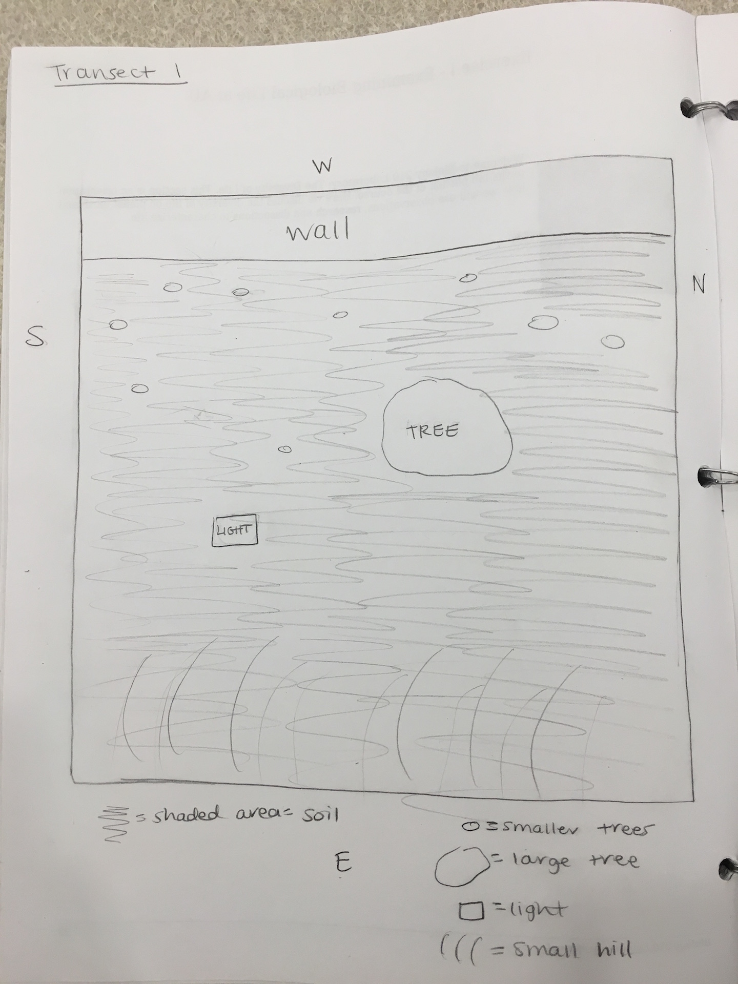 Conclusions & Future Directions: From the data obtained from the transect, it is reasonable to say that there are many different species of plants and fungi that inhabit transect 1. In the future, it may be helpful to take more precise measurements when using a microscope.