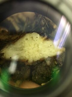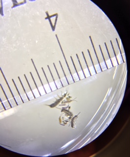 Fig. 37. A picture showing the invertebrates (sucking louse and aphids) found in the top layer of the Burlese funnel. Shown under a dissecting microscope at 1.5x.