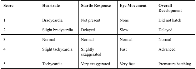 Figure 55. Graph explaining the scale used to rate specific developmental characteristics of the zebrafish.
