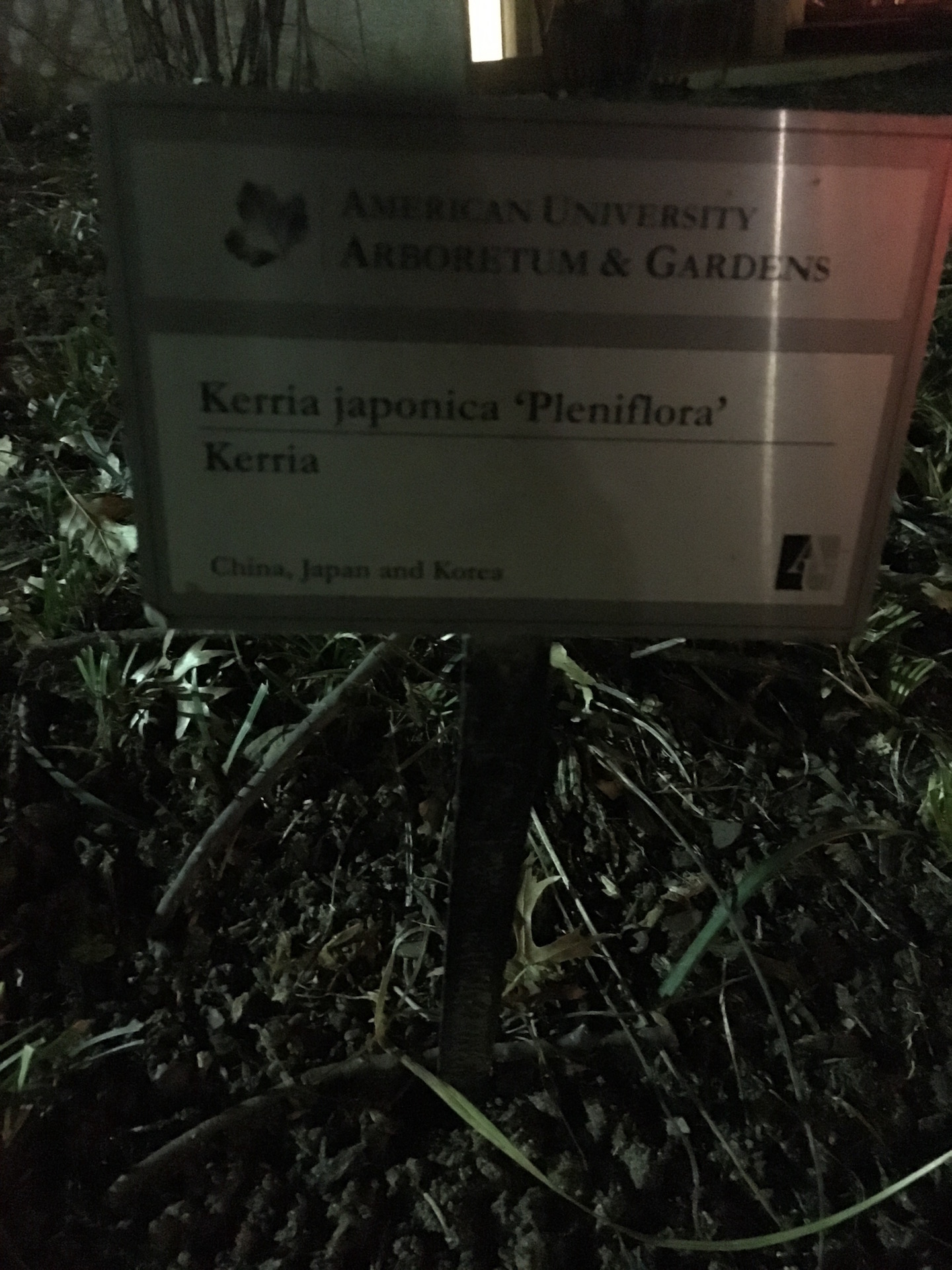 Fig. 2. Sign identifying the plant Kerria japonica 'Pleniflora'