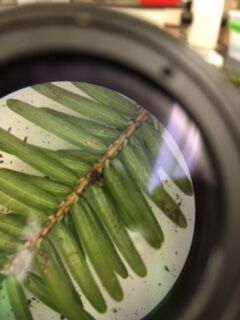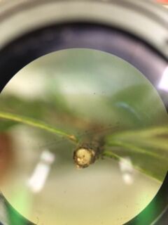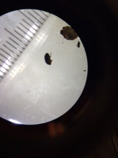 Data & Observations: We were able to find three different types of invertebrates from our transect. From the petri dish with the liquid from the bottom of the funnel (fig. 34) we found Coleoptera, commonly known as a beetle, (fig. 35) which belongs to the phylum Arthropoda and the class Insecta. Its size was approximately 5 units at 0.8 magnification and there were 2 present. Beetles are small and compact with hard shells and wings. We also found Anoplura, commonly known as a sucking louse (fig. 36), which belongs to the phylum Arthropoda and the class Insecta. The sucking louse have flat bodies, and oval heads with antennae. It's most notable feature is the sharp proboscis, an external appendage used for feeding or sucking. Its size was approximately 4 units at 0.8 magnification. From the petri dish with the liquid from the top of the funnel (fig. 37) we found 6 Anoplura and 7 Aphidoidea, commonly known as aphids. They belong to the phylum Arthropoda and the class Insecta. They are small, light green, and have antennae and measure about .5 units under 1.5 magnification. While there was some overlap in organisms, there does appear to be a difference in the organisms found in the top half versus the bottom half of the Berlese funnel, though the majority of the organisms that populate leaf litter appear to be from the phylum Arthropoda and the class Insecta. Some vertebrates that would possibly be inhabiting our transect are mammals (deer, raccoons, and squirrels), birds (Sparrows, Robins). Deers belong the phylum Chordae, the class Mammalia, the order Artiodactyla, the genus Cervidae, and the species Odocoileinae. Raccoons belong to the phylum Chordata, the class Mammalia, the order Carnivora, the family Procyonidea, the genus Procyon, and the species P. Iotor. Squirrels belong to the phylum Chordata, the class Mammalia, the order Rodentia, the suborder Sciuromorpha, and the family Sciuridae. Sparrows belong to the phylum Chordata, the class Aves, the order Passeriformes, the suborder Passeri, and the family Passeridae. Finally, robins belong to the phylum Chordata, the class Aves, the order Passeriformes, the family Turdidae, the genus Turdus, and the species T. Migratorius.