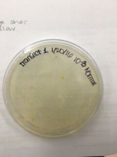 Conclusions & Future Directions: Since we had so much trouble finding bacteria from our samples, I think it's important to ensure that when we go back to the transect we try and obtain a wide variety of samples so that any lack of microorganisms cannot be attributed to error on our part. Nevertheless, it appears that Transect 1 does not have many microorganisms currently living in it (though that could be a result of the recent weather).