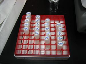 | 3. I aliquot the solution into 1 mL vials and store in the 4°C fridge.