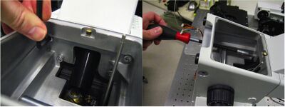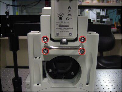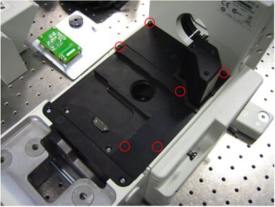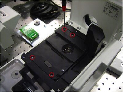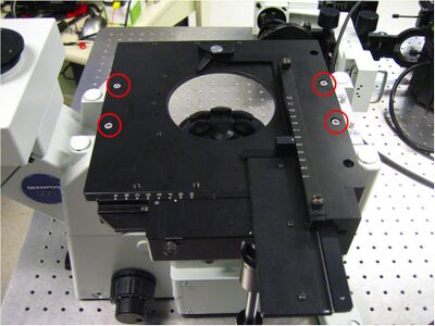 To get at these screws, I had to remove the bottom plate of the microscope.