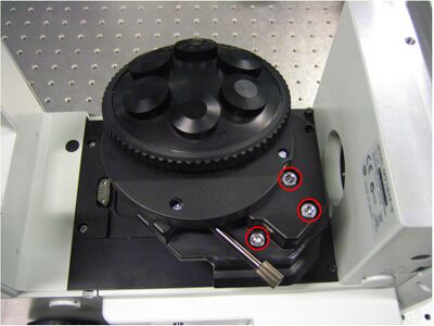 I then removed the objective turret. There are 3 M5 screws that I loosened and made sure to keep them in the turret so as to not loose them.