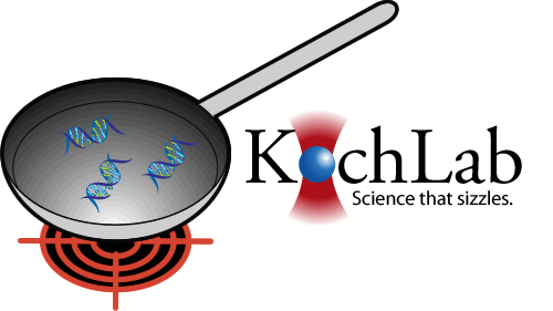 First try at a suitable KochLab logo. The font is custom made utilizing half an optical trap for the letter K. The DNA in the frying pan is from the OWW logo showing our participation in OpenWetWare and open science.