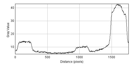 The bottom image is actually what I wanted. I realized looking at my gel image that the supposed 2x lane is not as bright as the 1x lane so I will have to go off that. According to intensity plot, the slice is 3x as bright so 3x as much DNA.