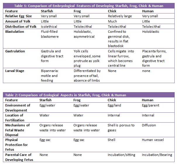 The purpose of today's activity was to observe egg and fetal development in a variety of animal species. We focused on starfish, frogs, and chickens.