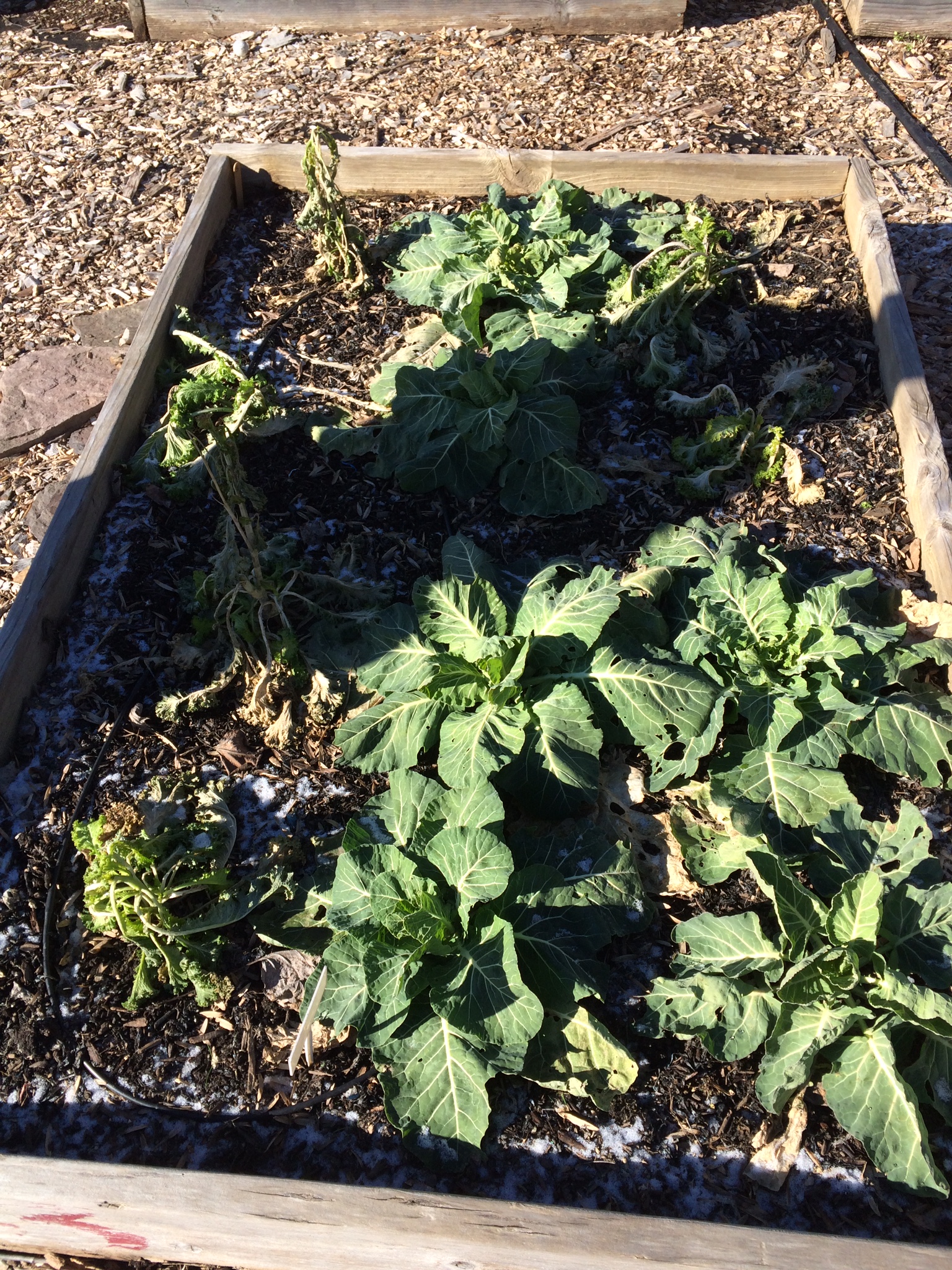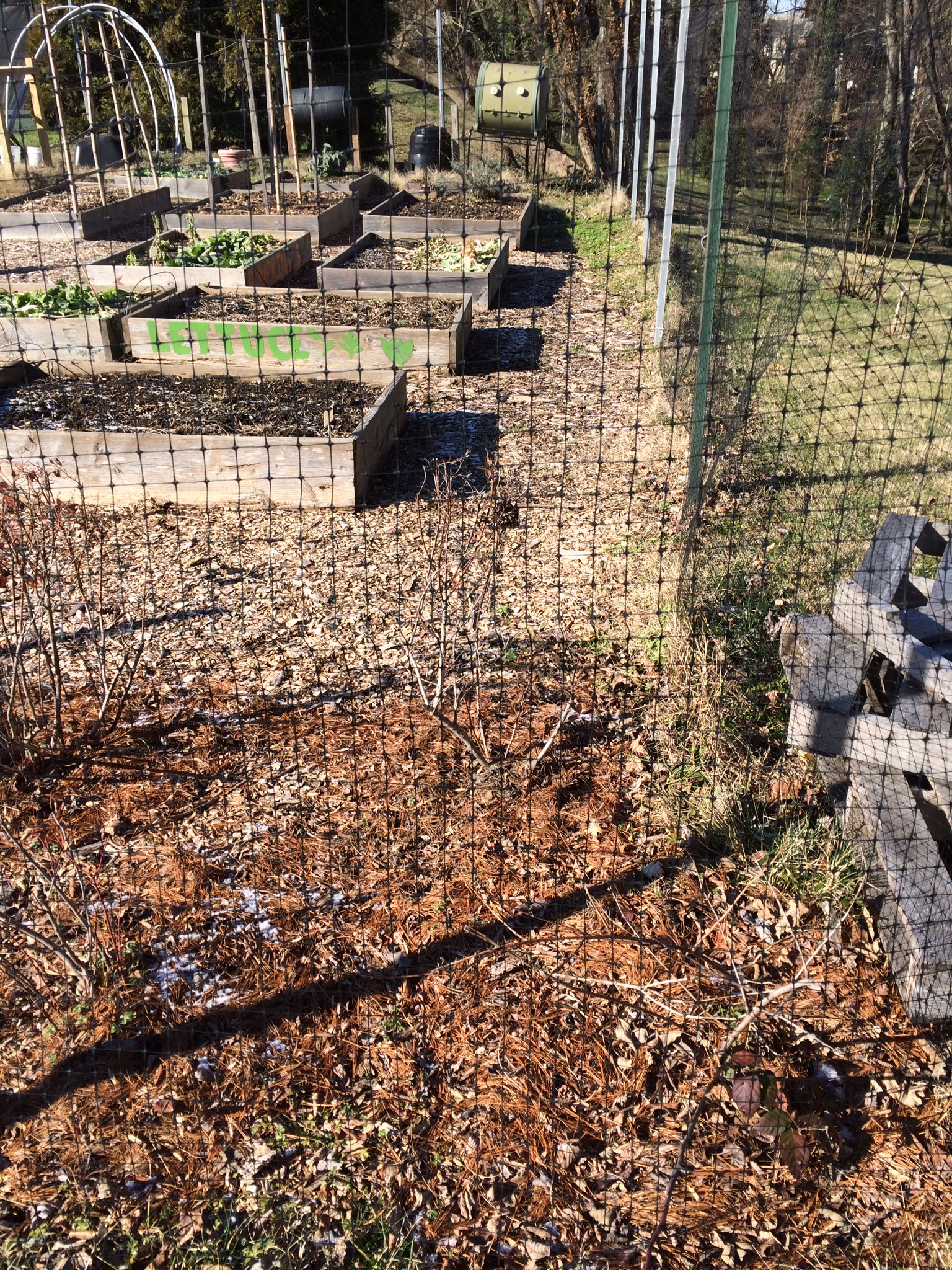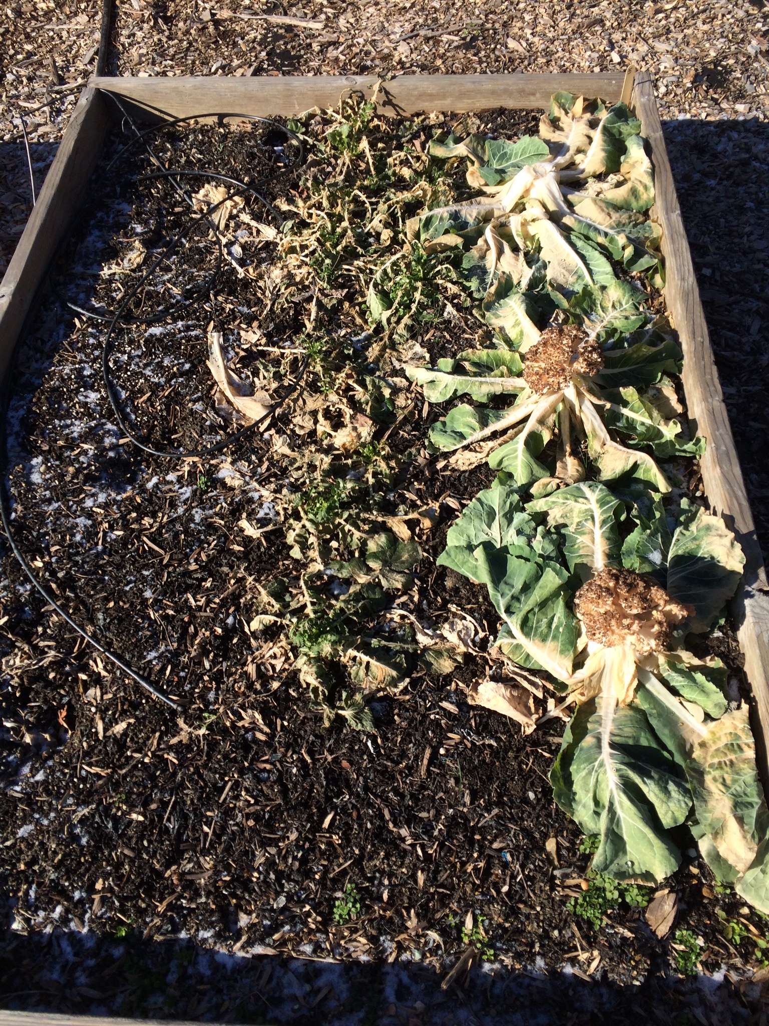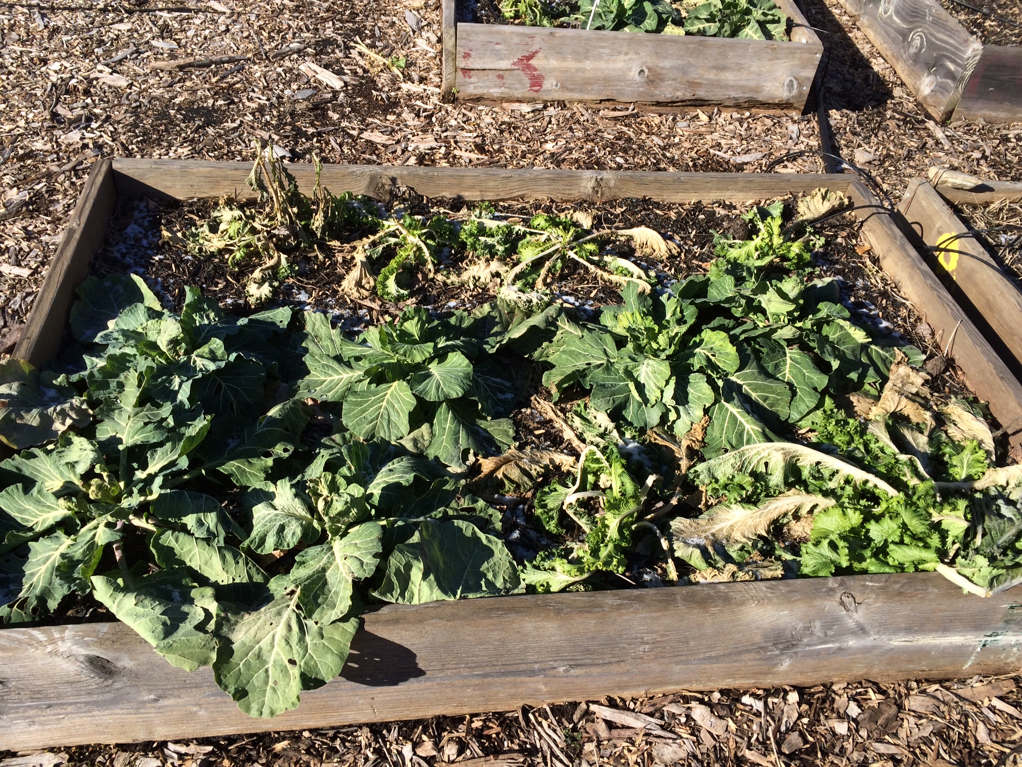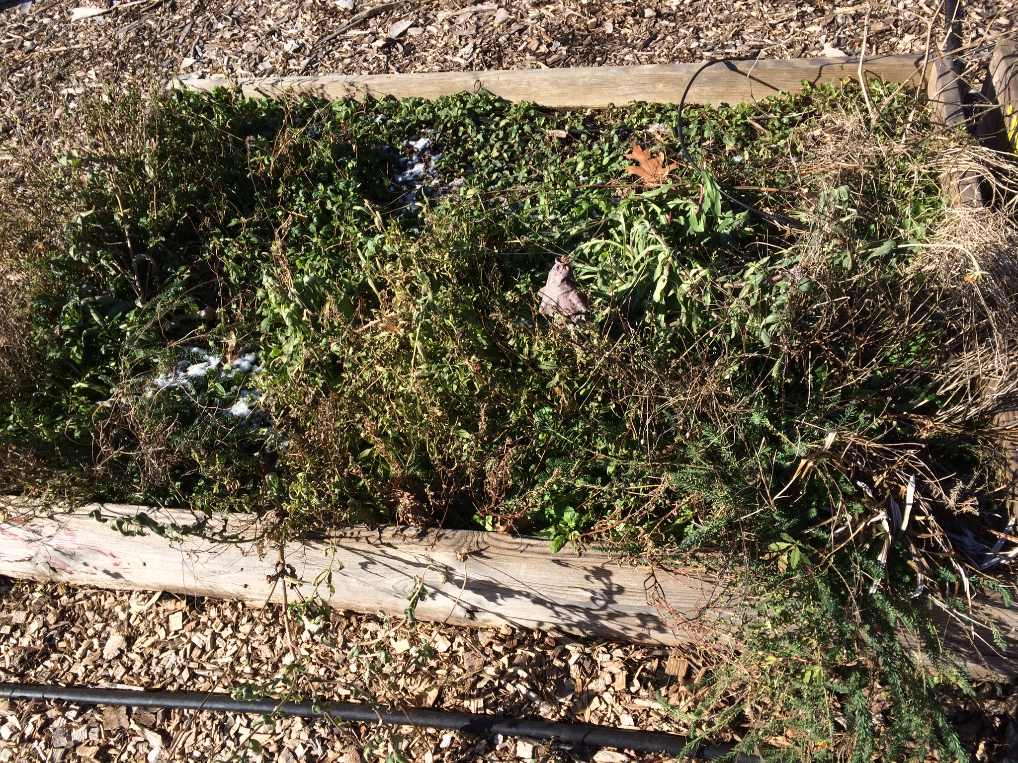 Biotic: plants found within two patches (lettuce?), weeds, grass, small flowering plants, "ground-hugging" plants, dormant rose(?) plants