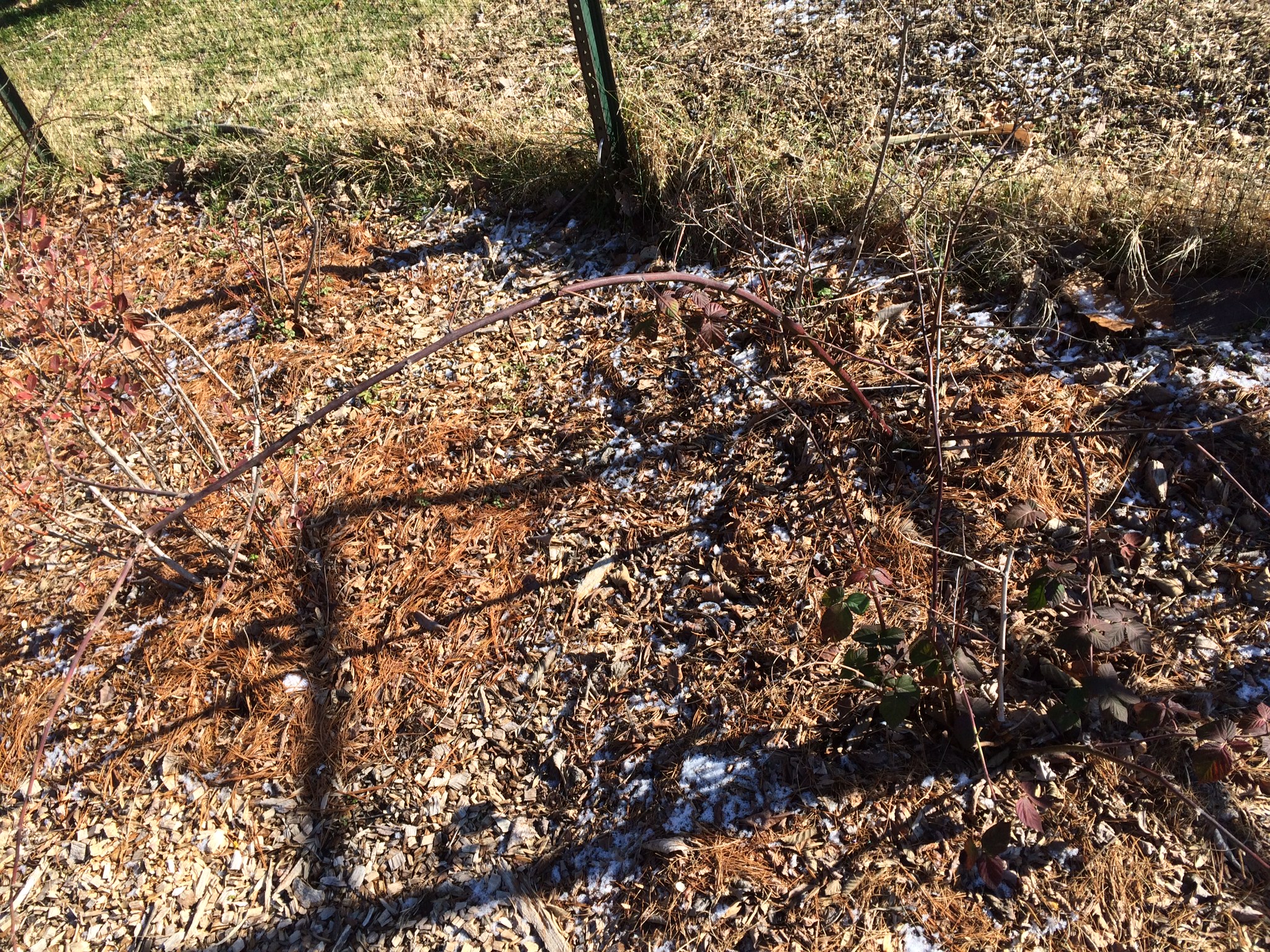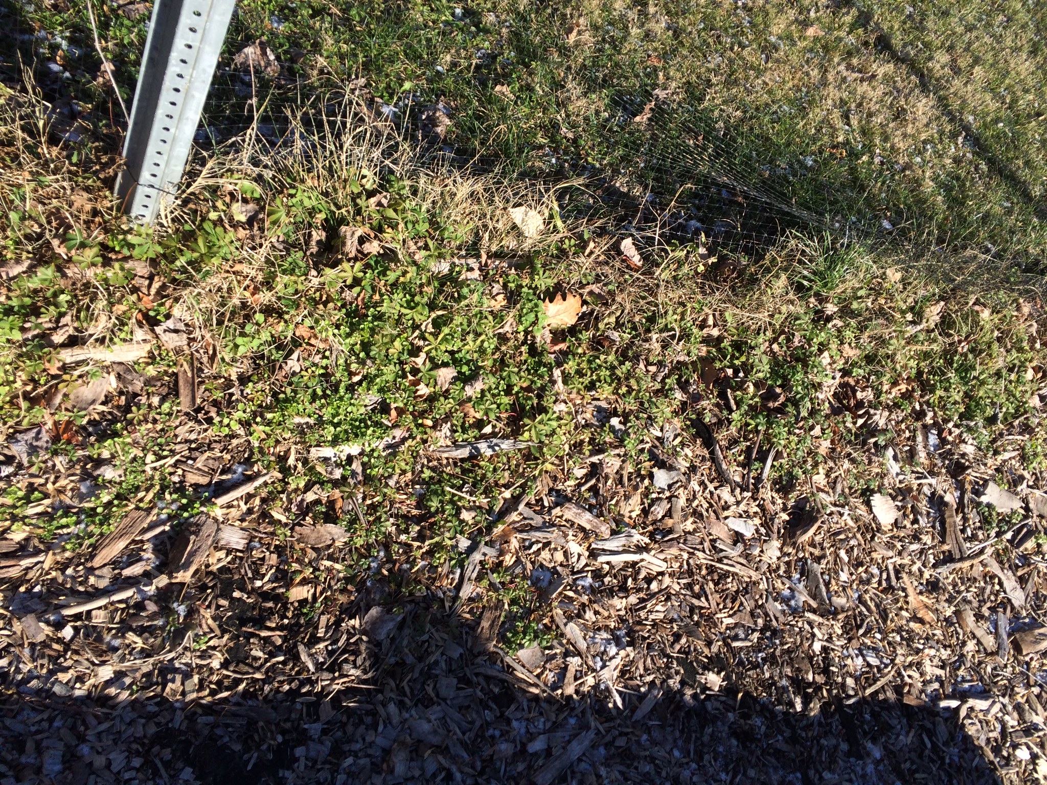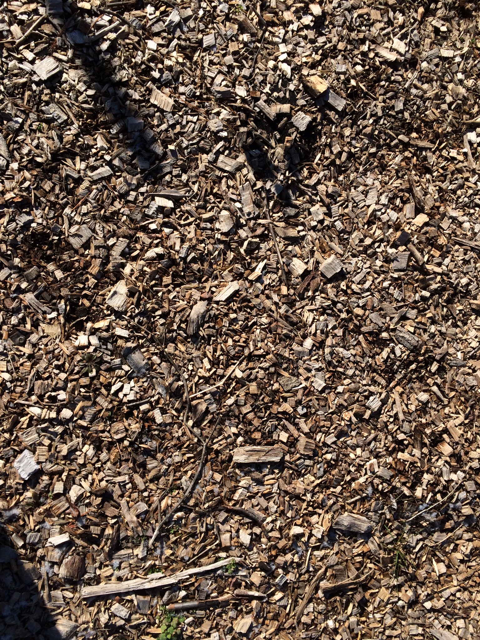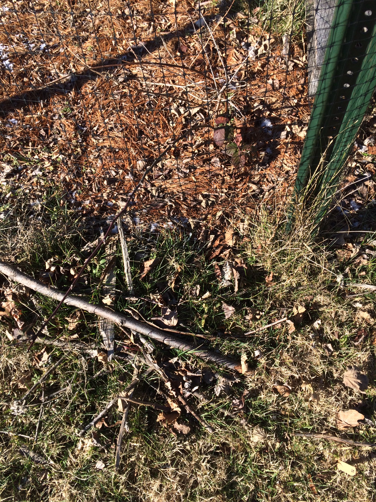 Abiotic: metal fence, wood chips, wood planks, nails, dead leaves, wiring (black with rubber surrounding), rubber hose, snow, pine needles