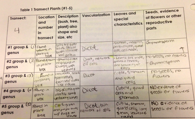 - Note: I uploaded a picture of "Table 1: Transect Plants" but if you would like me to rewrite out all of the data so that it would be easier to read please let me know.