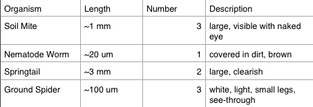 The smallest organism that we observed was the nematode, and the largest was the springtail.