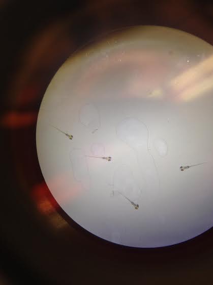 Day 3: Monday -we returned to our developing zebrafish after the weekend and counted the number of living and dead embryos in each plate as well as the number of zebrafish that had hatched -we identified what stage of development the remaining embryos were in and recorded this in our notes -we recorded the heartbeat rates of the control and experimental zebrafish and averaged these numbers -we measured the length of the control and experimental zebrafish and recorded this information -we fed the hatched zebrafish 2F from a small dropper -we added fresh water to these petri dishes