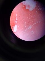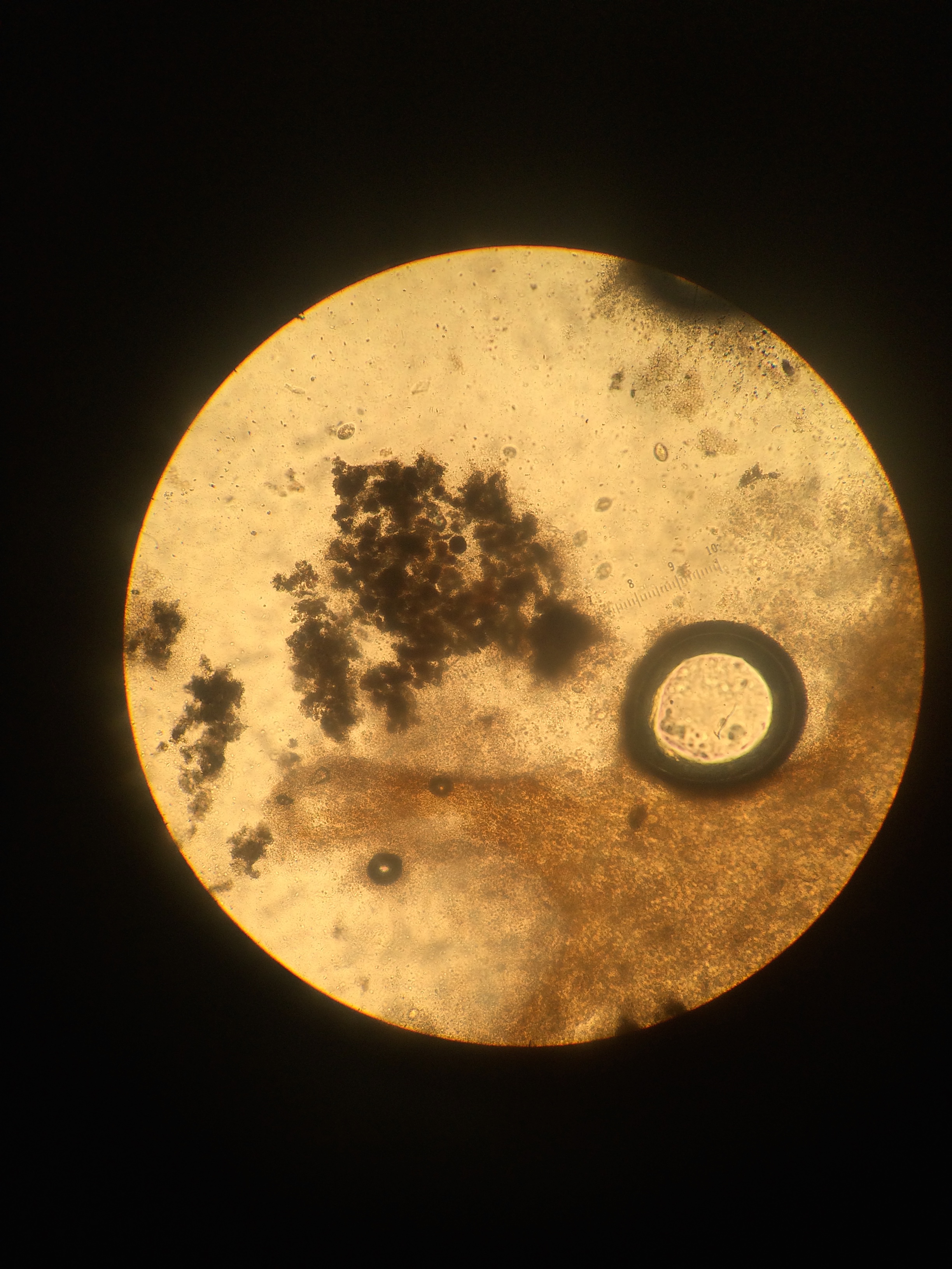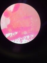 The Hay Infusion Culture observations showed that it had a thin layer of a mold like substance growing on top of the water. There was also some leaves floating on top. The water itself was a murky brown/green and at the bottom there was a layer of sediment and some leaves that had sunk. The culture smelled musky and damp. On the top layer Pandorina of 50um were observed. There were lots of these organisms in the samples from the top and they were motile with green cells inside of them. Pandorina is a photosynthesizing green algae. Also on the top Actinosphaerium of 25um were observed. These are slow moving protists who do not photosynthesize. In the bottom sample, only one type of organism was observed. This was the Colpidium of 30um. Many of these motile protists were observed. They do not photosynthesize.