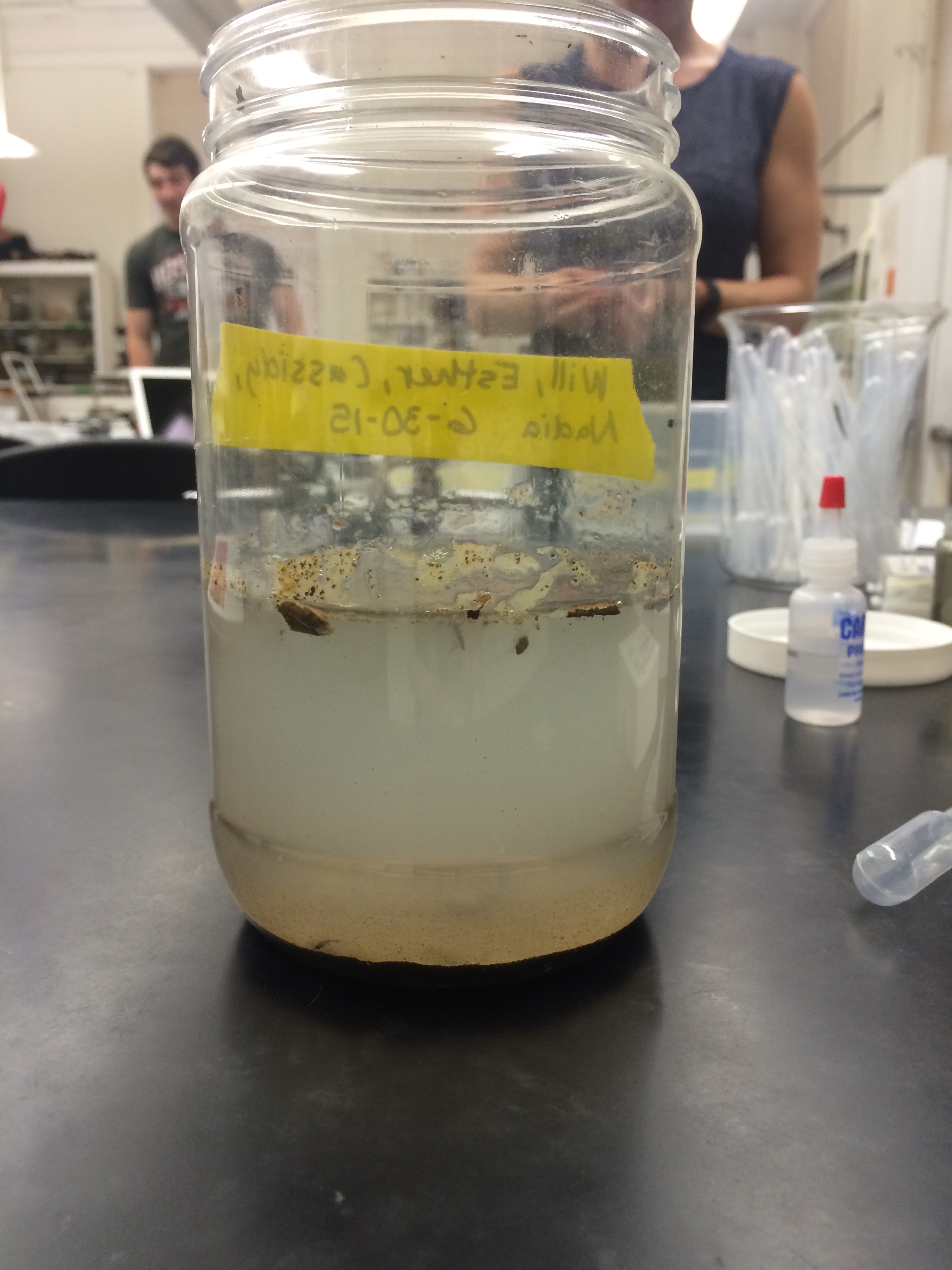 The Hay Infusion Culture after a week looked similar to how it did five days ago. The differences were that the water was now almost clear and there was more of the mold like substance growing on top of the water. THe Hay Infusion smelled even worse, but in a more traditional swamp way.