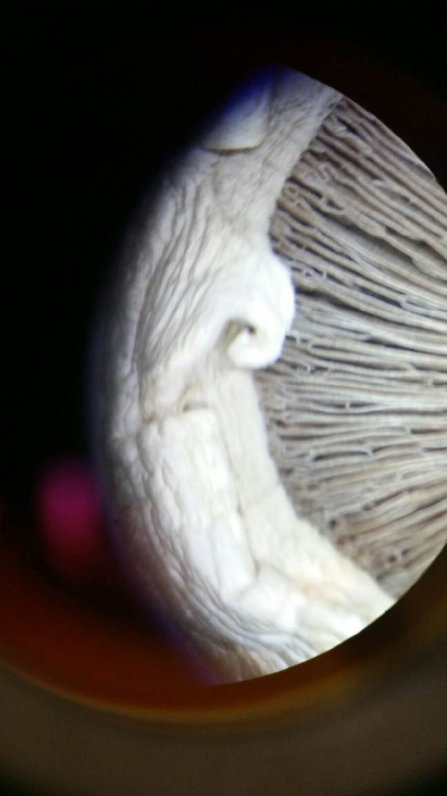 Figure 3 *Mushroom we observed under a microscope (fungus)* We know this is a fungus because it has specialized branches on the underside of the mushroom cap. Basidiomycota group.