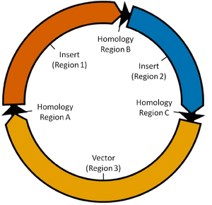 The three regions with homology sequences should be generated using PCR with appropriate primers (Region 1 is I13018, Region 2 is K116617 and Region 3 is the Expression Vector) - see the primer text file.