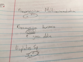 The next two images are rough sketches of the organisms observed. The last image is a look at the Euplotes found.