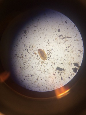 | Microanthropod, small Beetle | 1.5 | 2 | pale yellow, jointed legs, exoskeleton, more than one body section, protosomes |