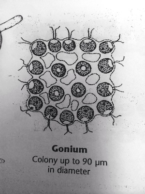 The Gonium that we found meets all the needs of life because it is alive. It is a live due to the fact that it acquires and uses energy, is made up of one or more cells (ours was made of 16 cells), it processes information, is capable of oogamous replication, and it is a product of evolution because it is part of the volvocine line.