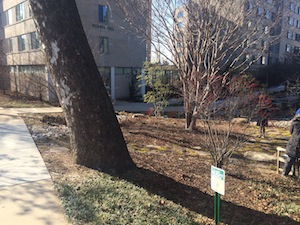 My lab group, Group 2, was assigned a 20 by 20 meter transect on American University's campus. The transect is located in between two sidewalks and a dorm building. It is part of a garden with benches, grass, many plants and trees.