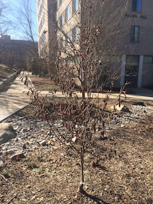 | #4 | tree with small buds south side of transect | small tree with brown leaves and buds, sample size= 24 cm | yes | branches, flowers/buds, roots | seeds, dicot, angiosperm |