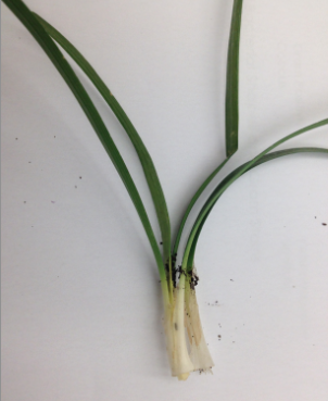 Angiosperm- found under the bushes in the middle of our transect: appears to have parallel veins; long, narrow, grassy leaf (similar to onion grass); waxy cuticle; stomata unclear; stem has phloem/xylem; monocot